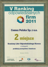 CEMEX Polska otrzymał wyróżnienie Lidera Branżowego w V Rankingu Odpowiedzialnych Firm 2011, przyznane przez Dziennik Gazeta Prawna.
