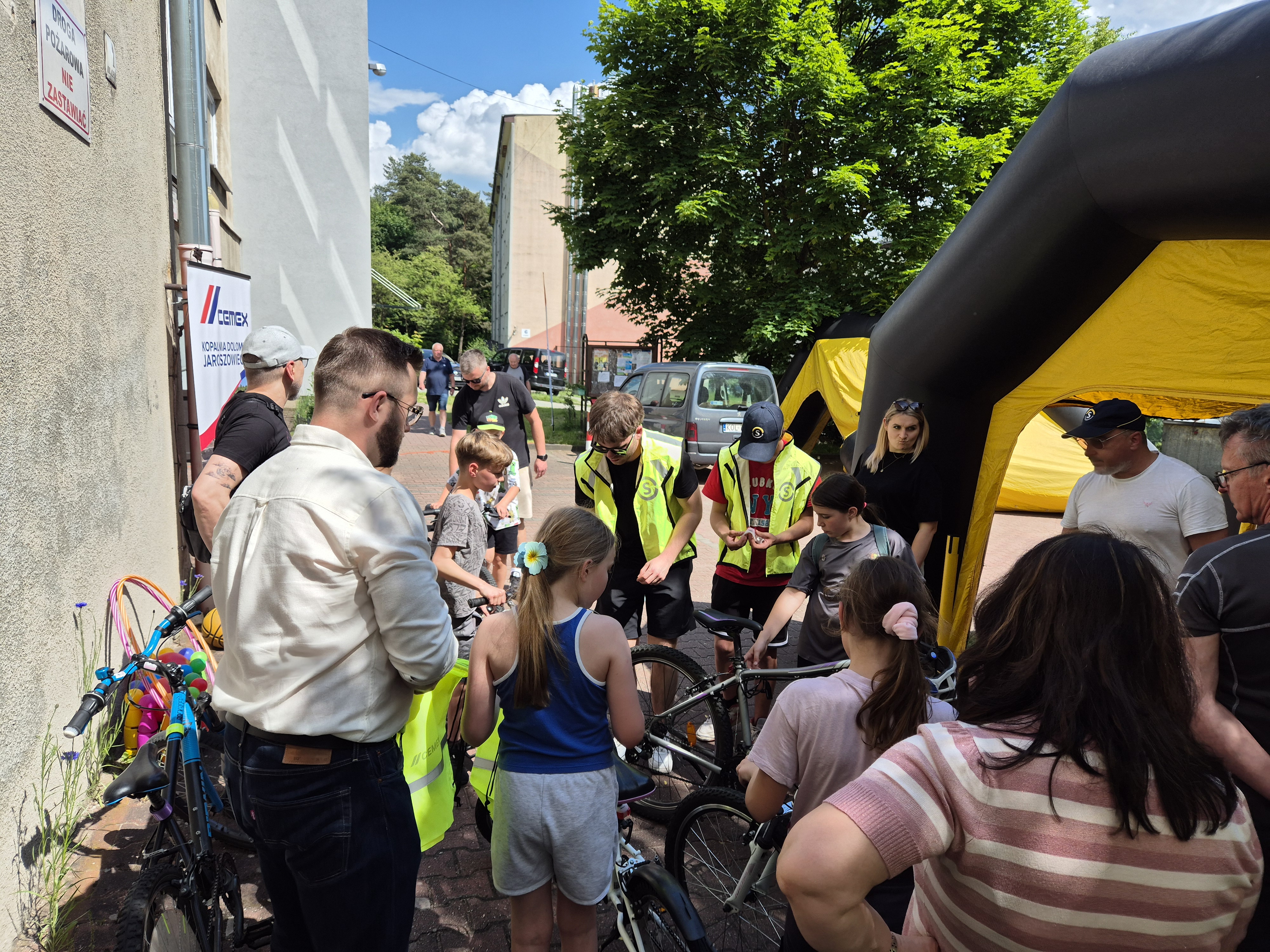 Zajęcia dotyczące bezpieczeństwa w ruchu drogowym poprowadzili eksperci projektu „Świadomy Kierowca”. Zarówno dzieci, jak i dorośli brali udział w warsztatach w ciemni oraz w drogowym teście kompetencji. Każdy chętny mógł tego dnia doposażyć swój rower lub hulajnogę w odblaski na koła, a w razie potrzeby specjaliści uzupełniali obowiązkowe wyposażenie rowerowe. Na zakończenie uczestnicy zajęć otrzymali gadżety od Fundacji Cemex i Działu BHP Cemex Polska.