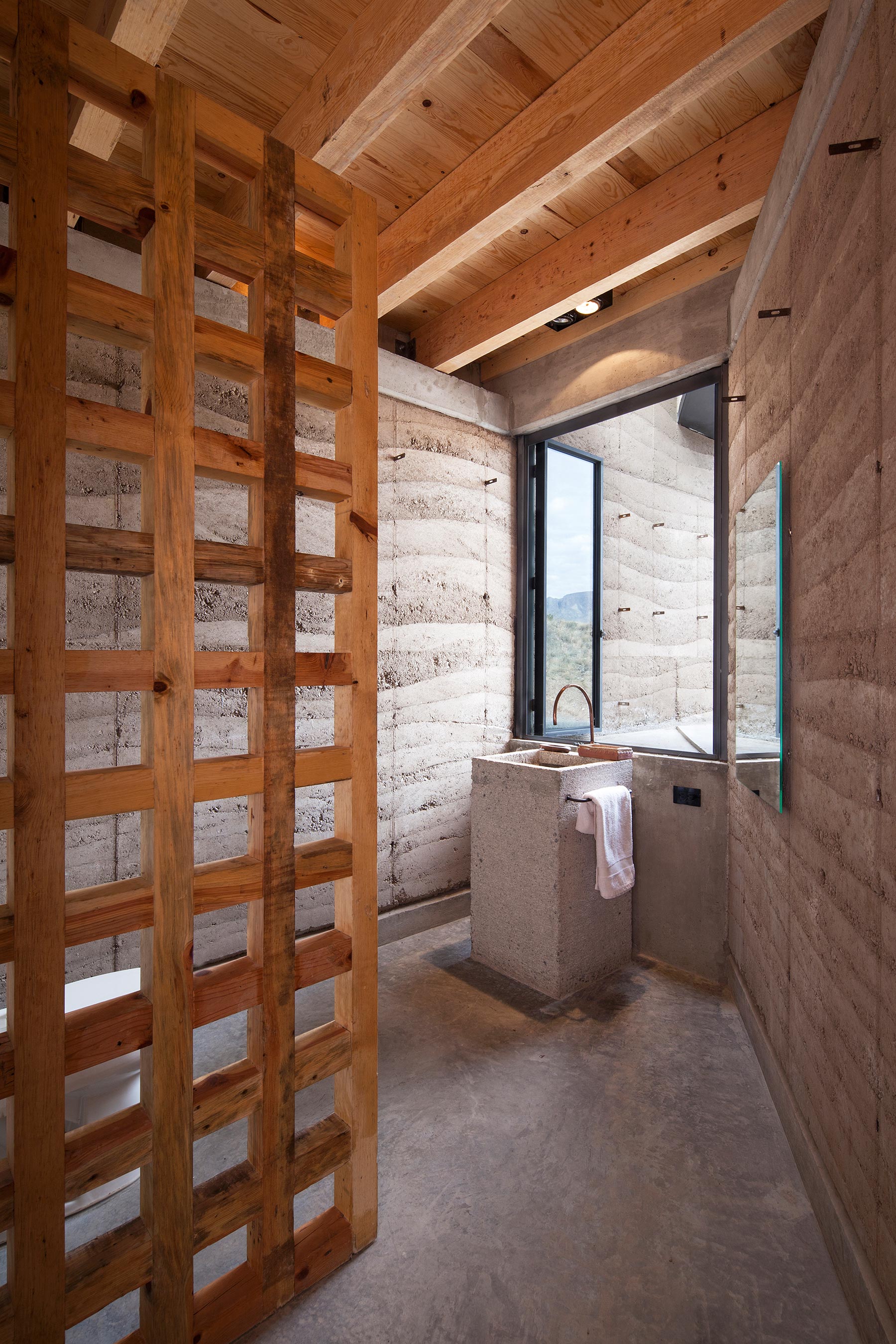 “Se concibe como un refugio dentro de un ambiente salvaje, por lo que nos remontamos a los primeros lugares utilizados por el hombre como protección: las cuevas”, explica Kenji López, líder de Greenfield MX, joven despacho que ejecutó el proyecto.