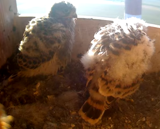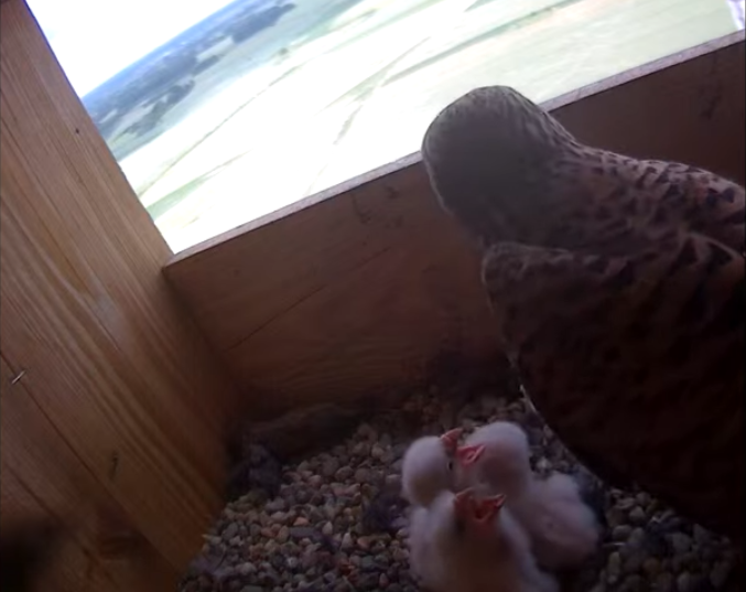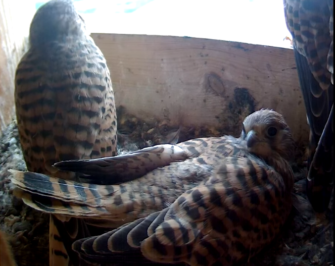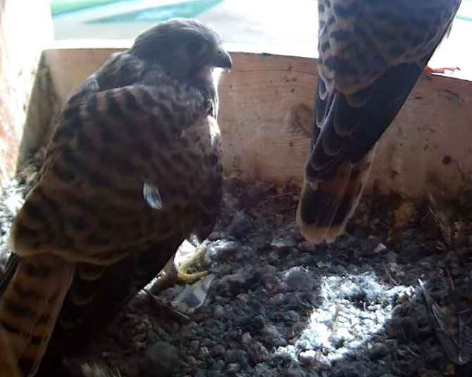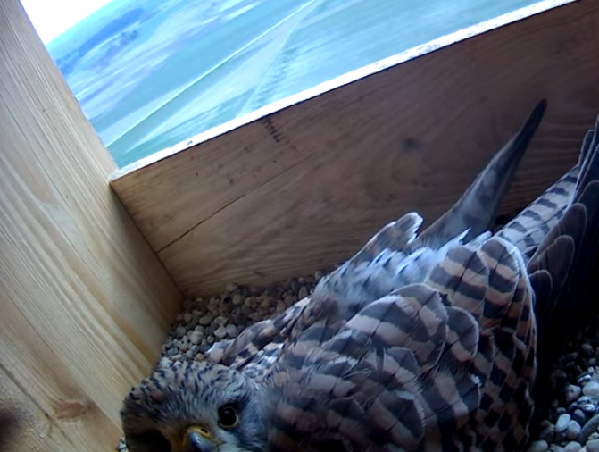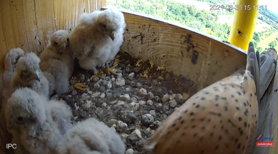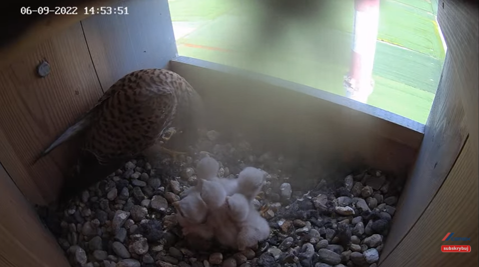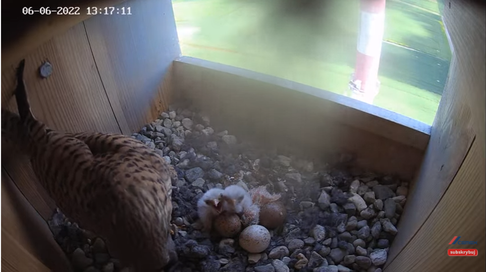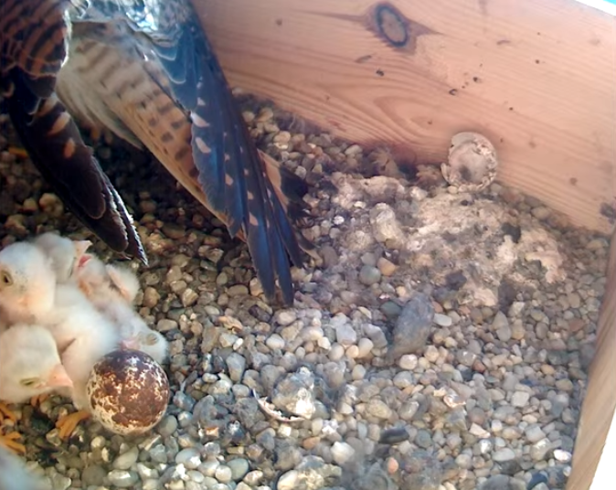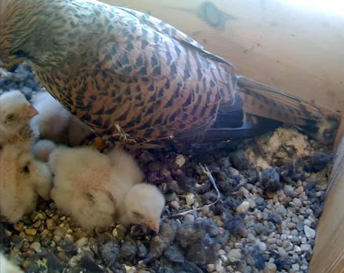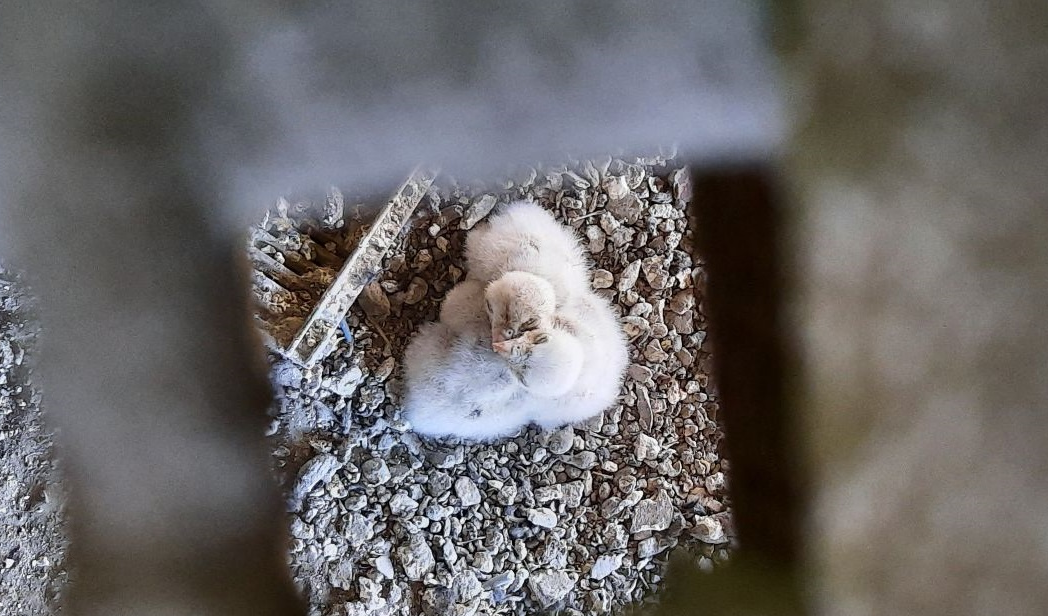 Drugie i trzecie pisklę u Rodziny Kruszywowskich w Cementowni Rudniki Przez większość czasu troskliwa mama inkubuje lęg, jednak w przerwie udało się zaobserwować pojawienie się kolejnych młodych pustułek |
