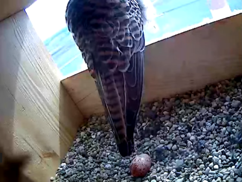 Drugie jajo u Rodziny Cementowskich w Cementowni Chełm Czy pustułki co roku składają jaja w tych samych miejscach? Nie zawsze, ale chętnie wybierają lokalizacje, w których w poprzednich latach udało im się odchować młode (Pietkiewicz M., Kwaśniewicz P., Łuczak P., 2016, Biologia lęgowa pustułki we Wrocławiu). Pierwsze jajo u Rodziny Betonowskich w Cementowni Chełm Zazwyczaj pustułki składają jaja przed południem, w okresie między godziną 8:00 a 12:00 (Rejt Ł., 2007, Biologia lęgowa pustułki Falco tinnunculus w środowisku miejskim Warszawy). Tym razem mogliśmy jednak obserwować zniesienie w okolicach godziny 21. |