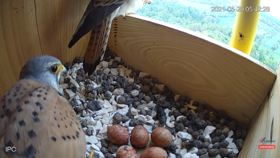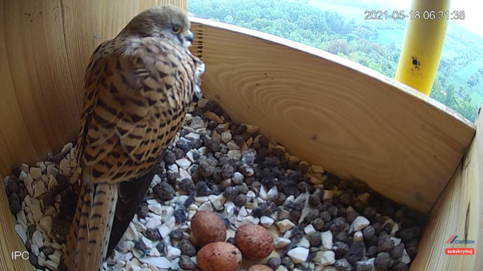 Piąte jajo u Rodziny Cementowskich w Cementowni Chełm Przyjmuje się, że pustułki dostosowują liczbę potomstwa do obfitości pożywienia w danym sezonie. Ilość jaj w naszych budkach lęgowych sugeruje zatem dużą dostępności norników w tym roku. |