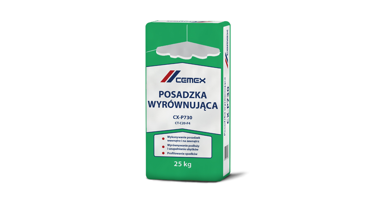 Posadzka wyrównująca CX-P730 służy do wyrównywania podłoży pod wszelkiego rodzaju okładziny ceramiczne oraz do profilowania spadków i wykonywania warstw dociskowych. Grubość warstwy zaprawy nie powinna przekraczać 50 mm. Może być stosowana do uzupełniania ubytków w konstrukcjach betonowych, żelbetowych, murowych oraz do napraw podkładów i posadzek cementowych. Do stosowania wewnątrz i na zewnątrz budynków.