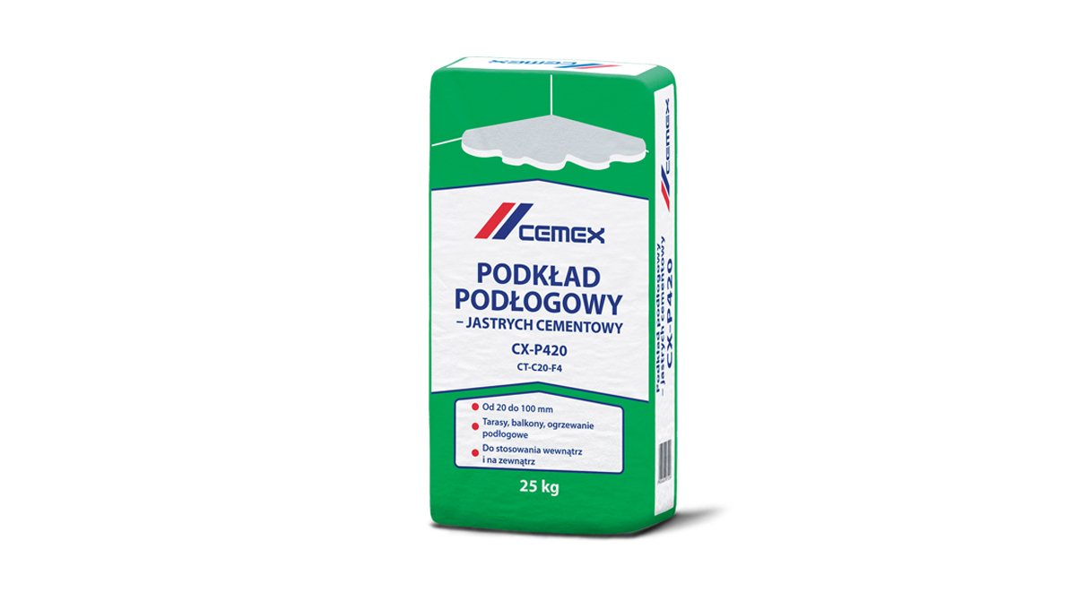 Podkład podłogowy CX-P420 służy do wykonywania posadzek, warstw dociskowych i profilowania spadków oraz jako podkład pod posadzki samopoziomujące. Przedział grubości: od 20 do 100 mm. Może być stosowana na warstwie odcinającej (min. grubość 30 mm), jako jastrych cementowy zespolony (min. grubość 20 mm) lub pływający, np. na warstwie termoizolacji (min. grubość 40 mm). W systemach ogrzewania podłogowego minimalna grubość warstwy nad elementem grzejnym wynosi również 30 mm. Do stosowania wewnątrz i na zewnątrz budynków.