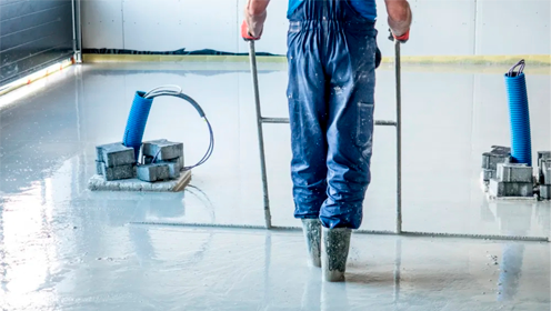 • Niższe koszty robocizny i szybkość aplikacji: przy dobrej organizacji pracy 3 osoby są w stanie wykonać nawet 800 m2 posadzki dziennie. Jest to prawie 4 razy większa powierzchnia, niż w przypadku półsuchych jastrychów typu "mixokret".