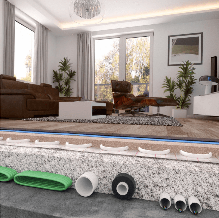 • Niższa grubość podkładu: można wylewać na grubość minimum 30 mm na warstwie oddzielającej bez ogrzewania podłogowego oraz minimum 50 mm w przypadku ogrzewania podłogowego.