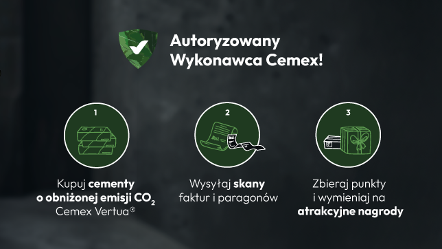 - Dokonaj zakupu minimum 39 palet cementów Cemex Vertua®