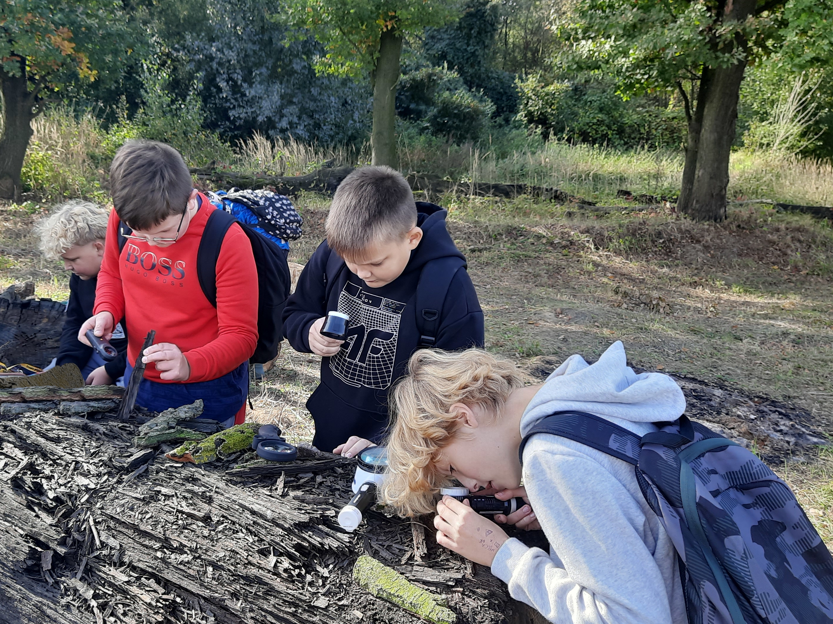 Wędrując wzdłuż dziesięciu tablic edukacyjnych, dzieci zdobywały wiedzę o występujących w sąsiedztwie ścieżki gatunkach roślin i zwierząt. Obserwując przez lupy porosty, dowiedziały się jak na ich podstawie ocenić jakość powietrza, a przyglądając się pozostawionym na podłożu odciskom uczyły się rozpoznawać tropy zwierząt. Dodatkową atrakcją warsztatów była obserwacja borsuczych nor oraz czarnych dębów, czyli drewna kopalnego wydobytego ze złoża.