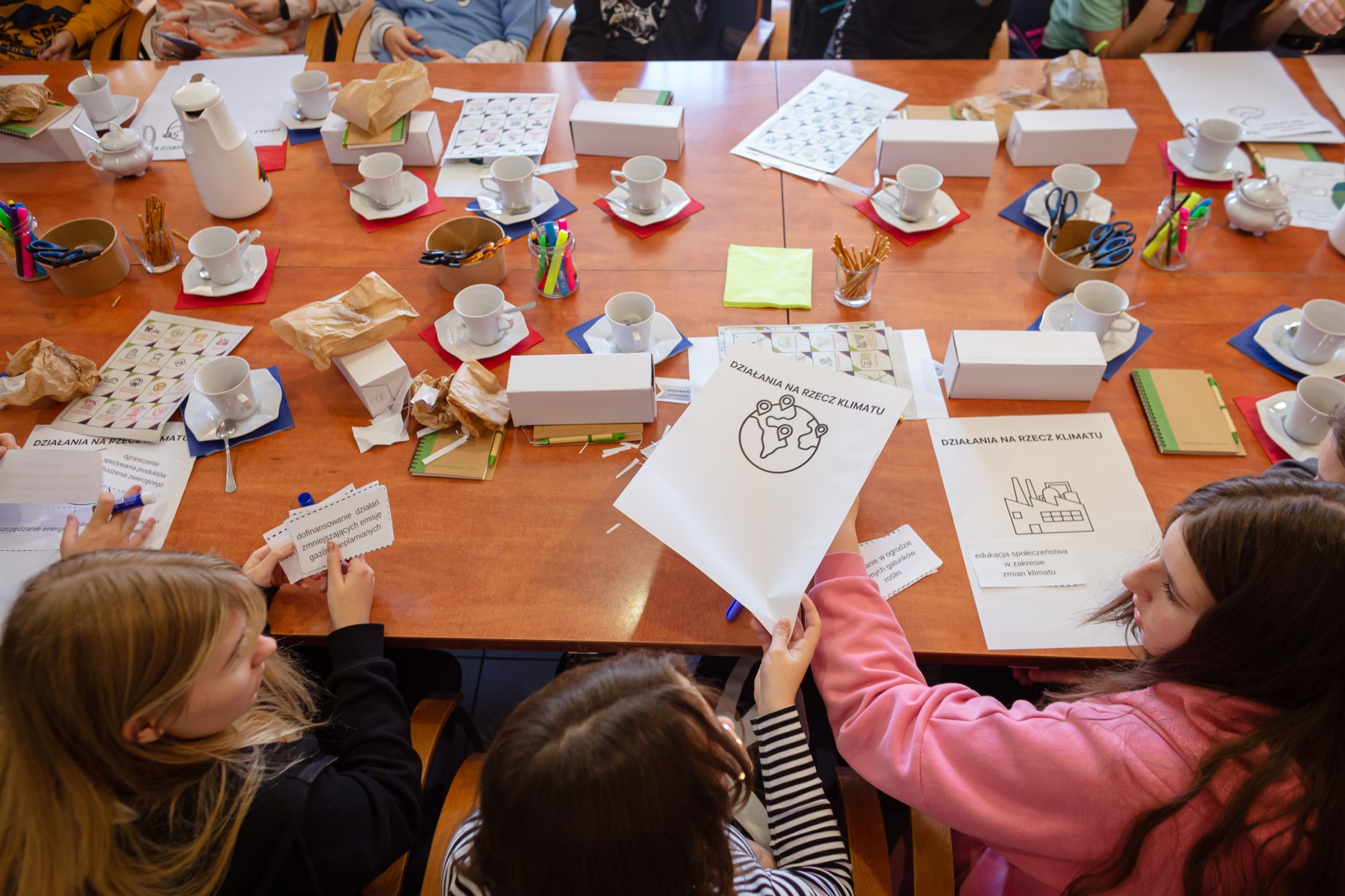 Podczas warsztatów został poruszony także temat zmian klimatu, które są coraz częściej odczuwane przez młodego człowieka. Na zajęciach dyskutowano zarówno o konsekwencjach, jak i przyczynach globalnego ocieplenia. Przede wszystkim skupiono się jednak na działaniach, które można podjąć by zmniejszyć emisję gazów cieplarnianych oraz przystosować się do zmian klimatu, co jest nieuniknione. Wśród pomysłów na adaptację do zmian klimatu znalazło się m.in. nawadnianie organizmu podczas upałów, sadzenie roślin ciepłolubnych, wykorzystywanie wody deszczowej do podlewania czy też założenie domku dla owadów zapylających. Z kolei, by zredukować emisję gazów cieplarnianych, młodzież zwracała uwagę na konieczność korzystania z przyjaznego dla środowiska transportu (np. rower, komunikacja miejska), ograniczania spożywania produktów pochodzenia odzwierzęcego, a także oszczędzania energii elektrycznej i cieplnej.